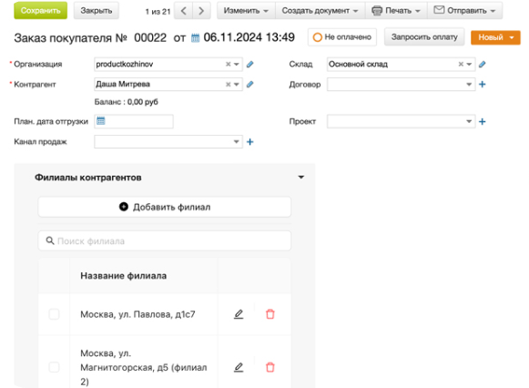 Приложение "Филиалы контрагентов" — это удобный инструмент для управления адресами филиалов и торговых точек контрагентов внутри сервиса МойСклад. Оно позволяет быстро добавлять, редактировать и выбирать нужные адреса для использования в документах отгрузок и заказах покупателей.